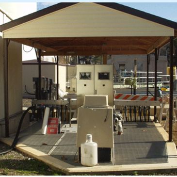 The systems electronics, ballasts, need to be kept cool through fans, an air conditioner and the use of structures above the electrical panels. Protect from sunlight, rain and the elements. Structure is meant to provide a safe workplace for working in inclement weather.